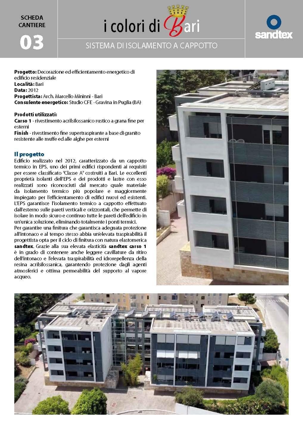 Anche diversi edifici noti nell'area metropolitana di Bari sono stati riqualificati con cicli  SANDTEX.