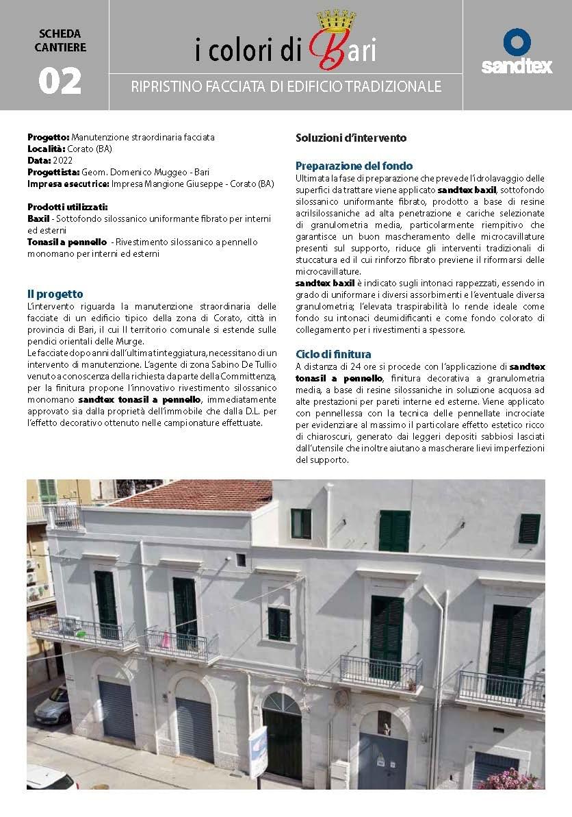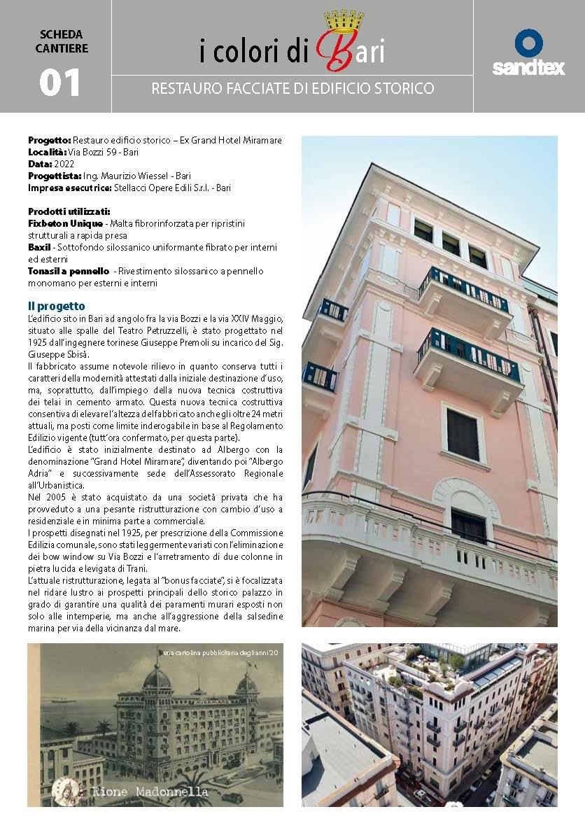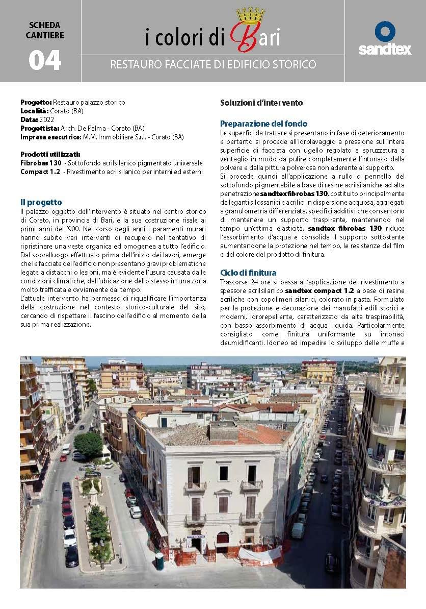 Dal 1963, con le sue latte gialle, SANDTEX è protagonista di molti interventi di ristrutturazione delle facciate dei palazzi più importanti del territorio barese e di molte altre città in Italia.